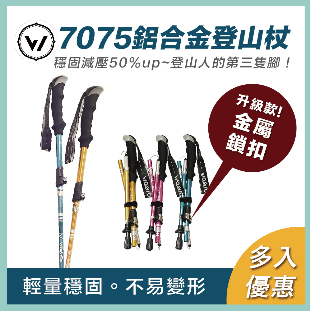 5分鐘前嚴選7075鋁合金登山杖 重量僅290g!輕便好攜帶 好的登山杖不只幫助減輕上半身重量 更能減緩膝關節、腳踝的衝擊! 讓你的登山旅途更加健康舒適! - 2支優惠價1599