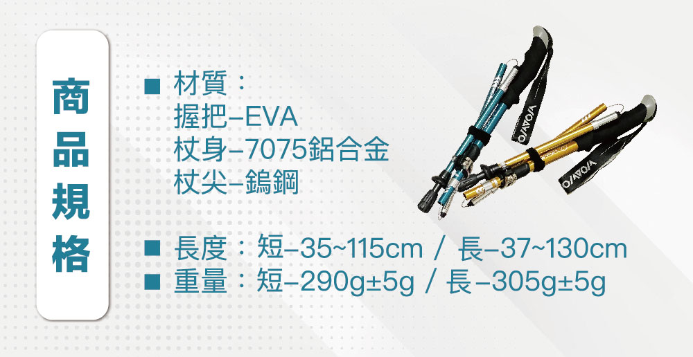 半小時前嚴選7075鋁合金登山杖 重量僅290g!輕便好攜帶 好的登山杖不只幫助減輕上半身重量 更能減緩膝關節、腳踝的衝擊! 讓你的登山旅途更加健康舒適! - 单支NT$990